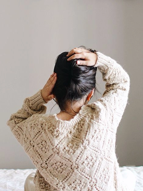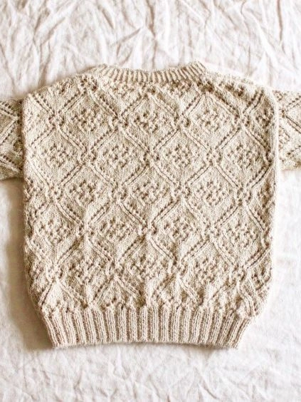 몸판은 암홀 전까지는 원통으로 떠주다가 암홀부터 뒤판, 앞판을 분리하여 평면뜨기로 뜹니다. 소매는 원통뜨기로 진행됩니다.