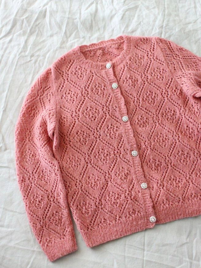 몸판, 소매 전체가 Rose Trellis Lace 패턴으로 이루어져 있으며 차트의 기호를 보며 무늬를 완성해 갑니다.